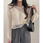 tシャツ ニットインナー付きメッシュ編みトップス レディース
