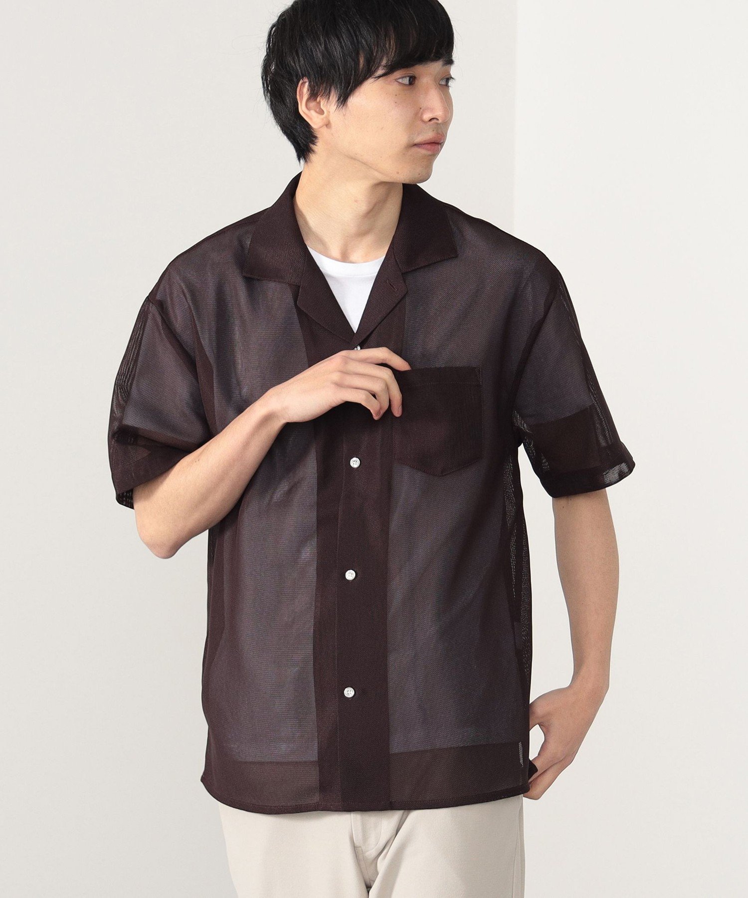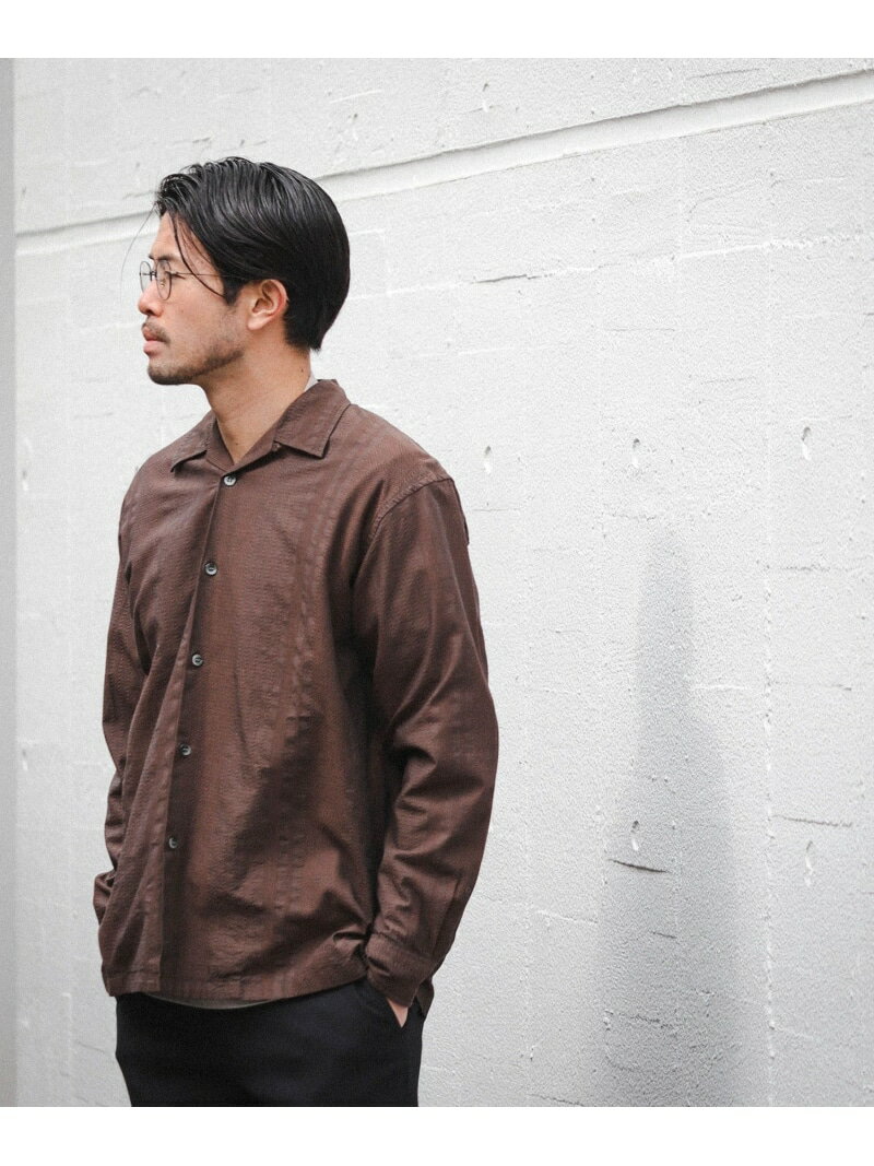 【SALE/70%OFF】BEAMS HEART MEN BEAMS HEART / ポリエステル カラミ オープンカラー シャツ ビームス アウトレット トップス シャツ・ブラウス ブラウン ネイビー