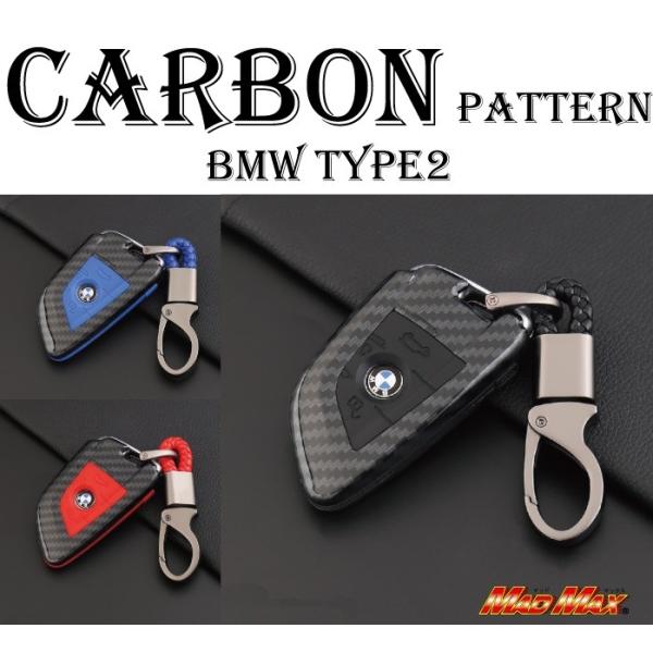 週末セール!!メール便送料無料!!BMW専用 カーボン調 スマートキーケース X1/X5/X6 3ボタン式 TYPE2 キーホルダー付き 各色