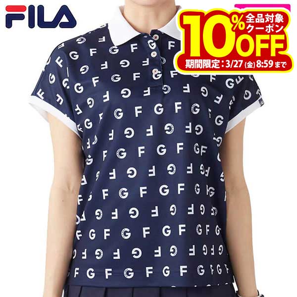 フィラ レディース モノグラム柄 フレンチスリーブ 半袖 ポロシャツ 755-610 ネイビー ゴルフウェア [2025年春夏モデル 50%OFF] 特価