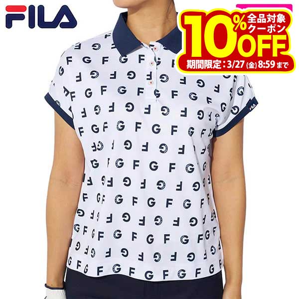 フィラ レディース モノグラム柄 フレンチスリーブ 半袖 ポロシャツ 755-610 ホワイト ゴルフウェア [2025年春夏モデル 50%OFF] 特価