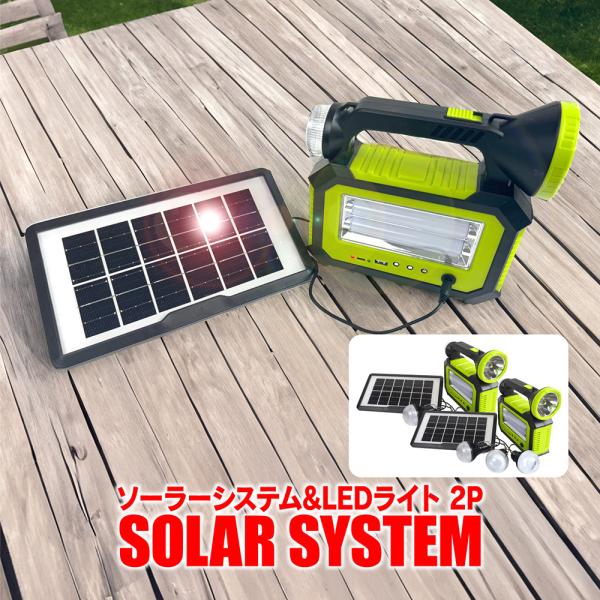 LED ワークライト ソーラーシステム ソーラーパネル 2個セット 太陽光 充電式 投光器 コンパクト 屋外 キャンプ アウトドア BBQ 夜釣り 災害 停電 値下 爆買