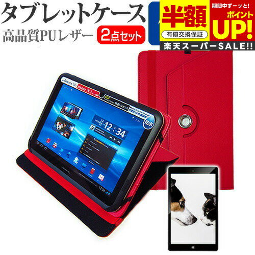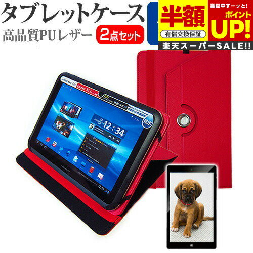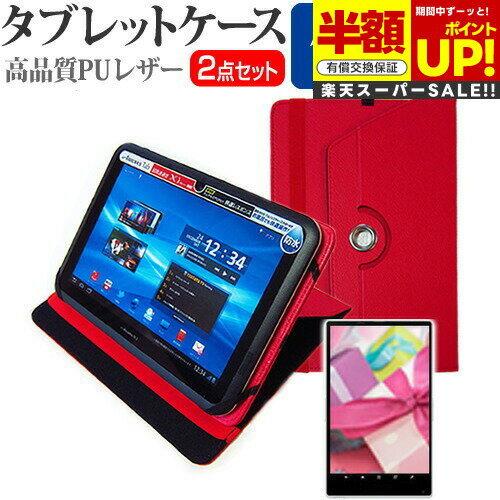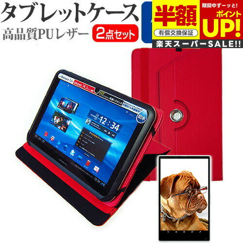 【スーパーSALE 半額 50%OFF】 ONKYO TW2A-73Z9A [10.1インチ] 機種で使える 360度回転スタンド機能 レザー タブレットケース & 液晶保護フィルム (反射防止) 赤 互換品 有償交換保証付き