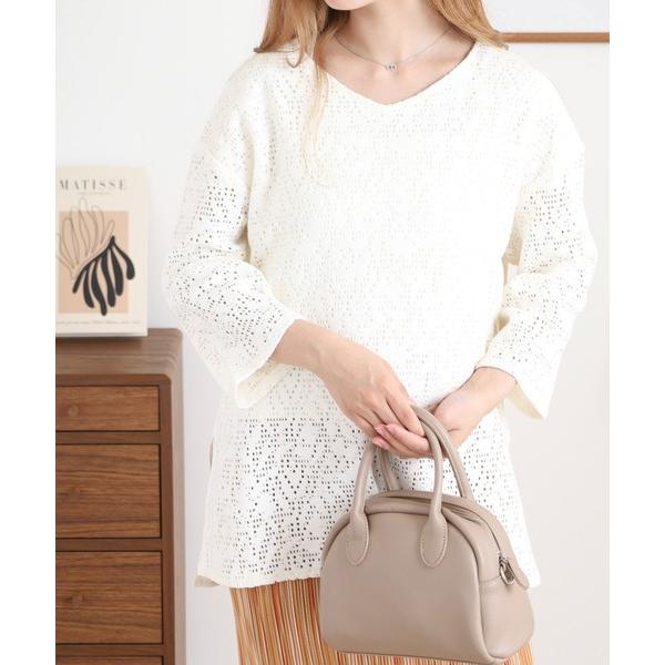 tシャツ 刺繍レース使いVネックTシャツ レディース
