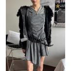 tシャツ 「ViVi掲載」ラインストーン付きサイドシャーリングフーディトップス レディース