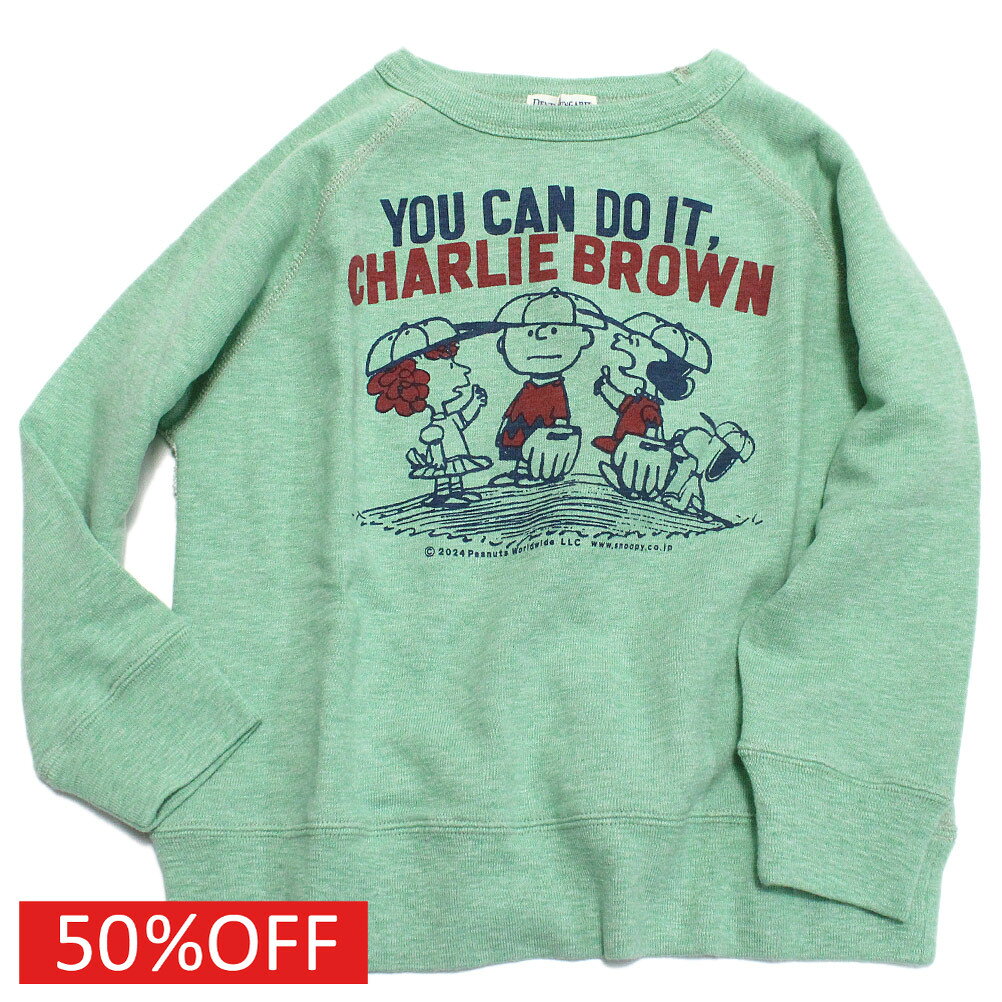 【子ども服/デニムダンガリー/スヌーピーコラボ/DENIM DUNGAREE/ジュニア服】 セール 【50%OFF】 トンプキンウラケ SNOOPY BASEBALL スウェット 28LGN淡緑